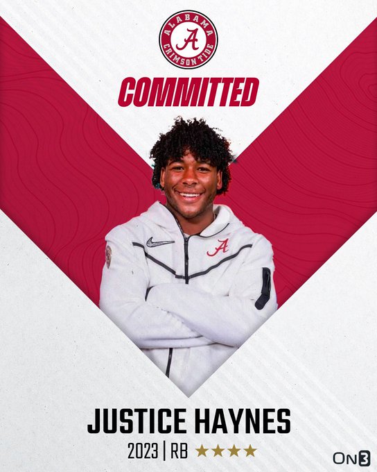 We've been hearing Bama felt confident in Haynes for a couple weeks. But yeah, the commitment this early came out of nowhere. Nice job by Coach Gillespie on this one! Hopefully it can help with Richard Young and Caleb Downs as well.