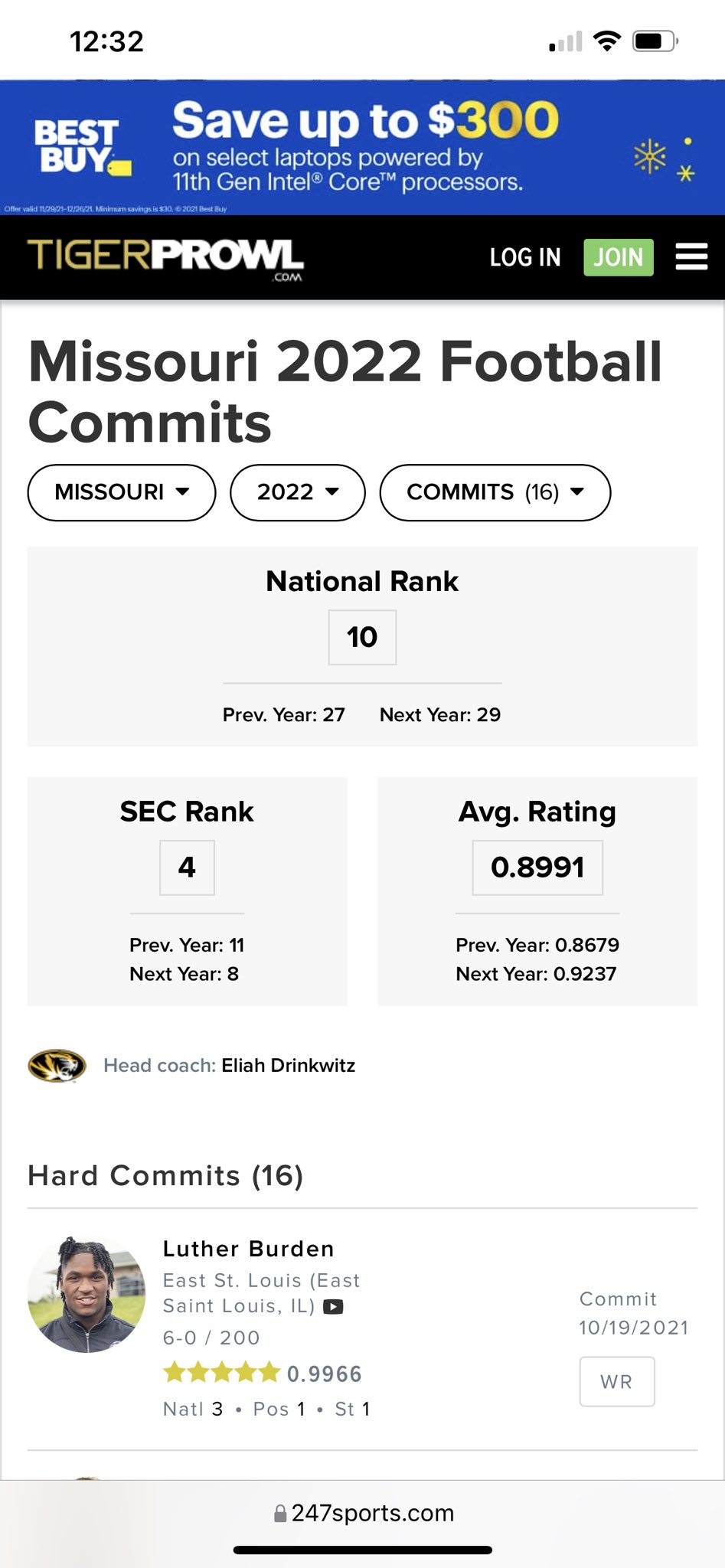 Lol so you brag about have the #11 class before signing day and it falls in 1 week? Maybe you should wait until rankings are final before starting a thread bragging about your class. I know Mizzou has never recruited well before - but you'll understand that nothing matters in rankings until after signing day