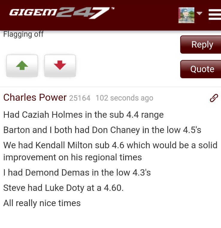 In the Opening thread on 247 there were pages and pages of Aggies mad that Fleming was ahead of Demas...then Fleming ran the exact same 40 as him at 25 lbs heavier and had a higher total score.