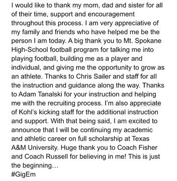 Congrats on the kicker A&M