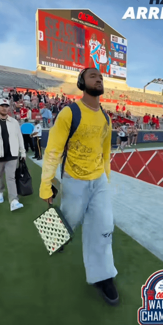 People absolutely need to go check out the instagram story of Ole Miss football and see wtf he is wearing when he walked through the stadium pregame.