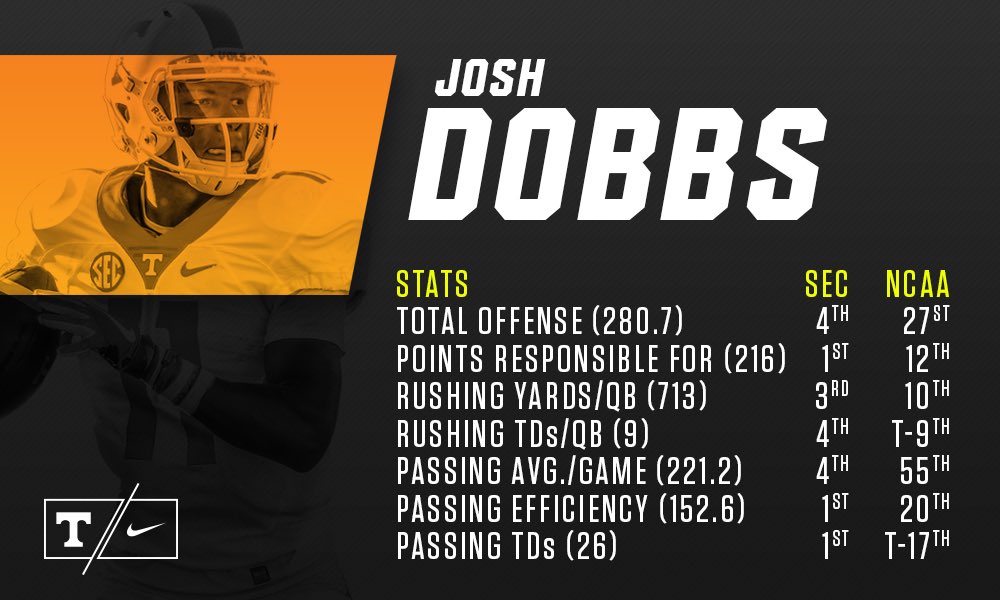 Dobbs finished top 5 in the SEC in all of those stats, pretty good if you ask me (even with the qb's being down this year)