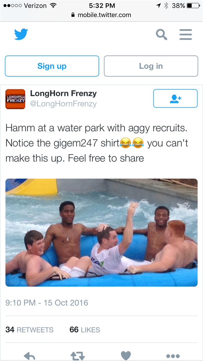 HAHAHAHA that was this spring at the VYPE Photo shoot at Typhoon Texas in the spring. After the event all the recruits and reporters went down the rides. It was good times
