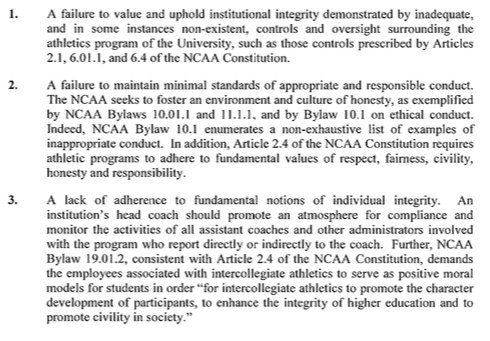 There are a few lines ihe summary report that are pretty damning too because the wording sounds exactly up the NCAA's alley