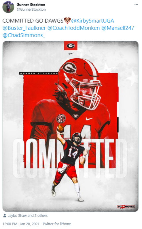 Stockton would be a great addition. He’d have to redshirt and wait his turn I suppose. If he’s ok with that, we should be. Go Dawgs!