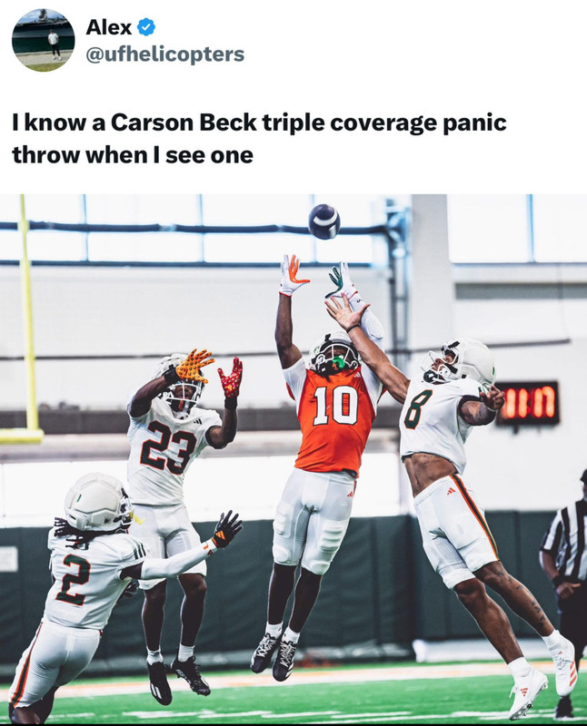When speaking about Miami's OL, Carson Beck told their offensive coordinator,