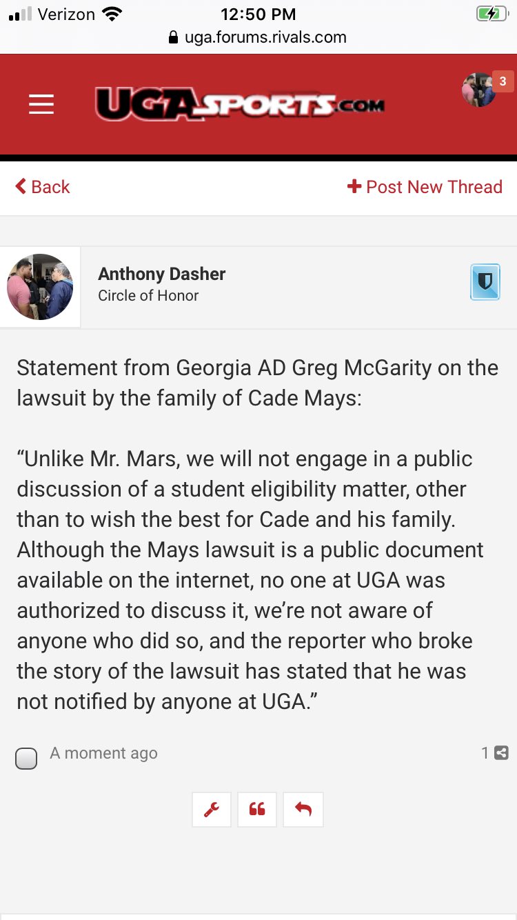 Typical lawyer. Implies that UGA lies in a 5 sentence statement but refuses to name the lie because hed get hit with libel/defamation.