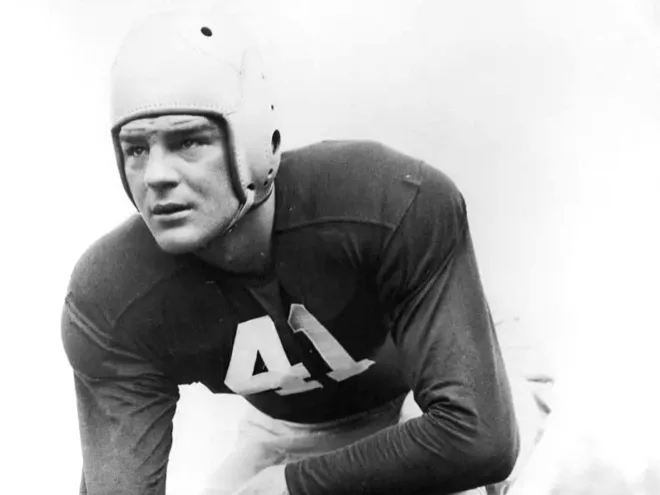 All American in ‘42, awarded the Bronze Star in WWII, pretty cool story.