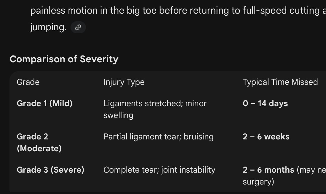 Harris has turf toe. You can either have surgery and be out 2-3 months or not have surgery and fight through the pain as much as you can. If you live as a normal human with no surgery you’re looking at 4-6 months of rest for it to “go away”. Harris will be limited but play as much as he can would be my guess.