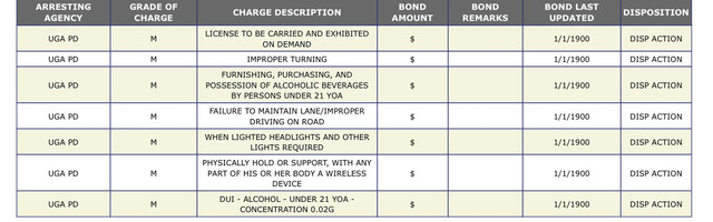 Kid got a DUI and somehow managed to chalk up 6 other misdemeanors in the process