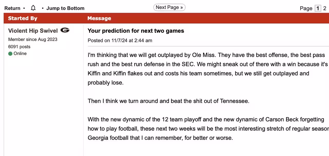 -At this point clesmon is a distant memory. We look entirely pedestrian and the rest of the season doesn't really look at that promising, especially since we go on the road at night to the #1 team that looks like an offensive juggernaut. And then of course in typical fashion, we totally flip the script on its head. We look incredible. Defense flying around. Etienne running possessed. Receivers catching the ball. Of course beck kept frickin up but it didn't matter. We thoroughly dominated on both sides the entire gmae. One of the more signature wins in UGA football history, if we're being honest. Now things are lookin back up again!