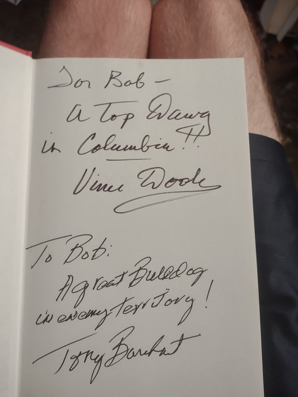 As I've said before was at a goodwill and came across this treasure... A Vince Dooley autobiography signed by Vince himself. I'd post pics but none of the image hosting services are loading the images now