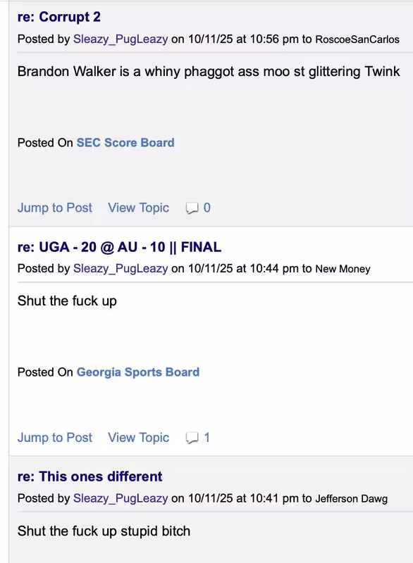 A lot of them really are miserable because their teams lose to Georgia year after year. They want Georgia's players to transfer, they want Kirby Smart fired. The troll behavior on this board is unmistakeable. If this was a UGA-centric website, the moderators would clean it up. But it's not and the trolls have taken over the GSB.