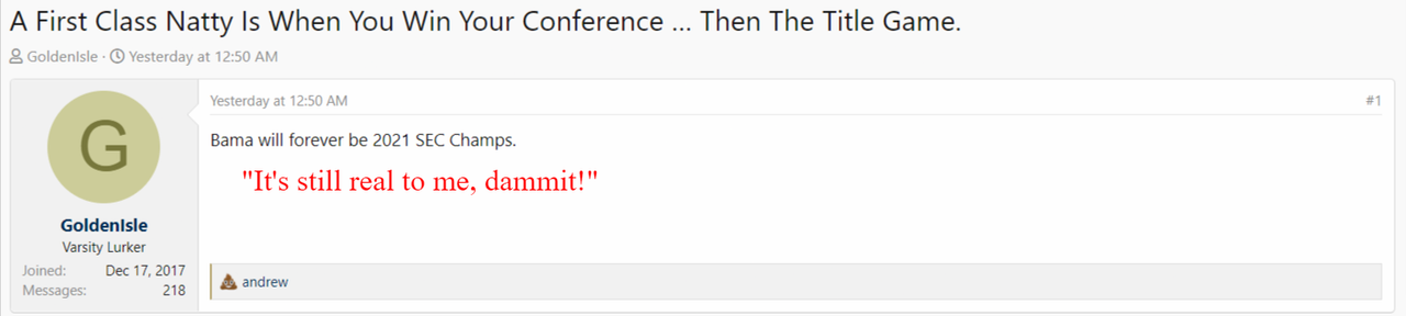 The point is the arse-sniffers have a very good football team because that is what they focus on but we can build on our ability to take victories away on a more regular basis and enjoy every one because: "SEC means more, that's how we made $100million off FB last year, but we still managed to lose to a superior academic institute who has 1/5th of our budget, higher admission standards, and less focus on FB."
