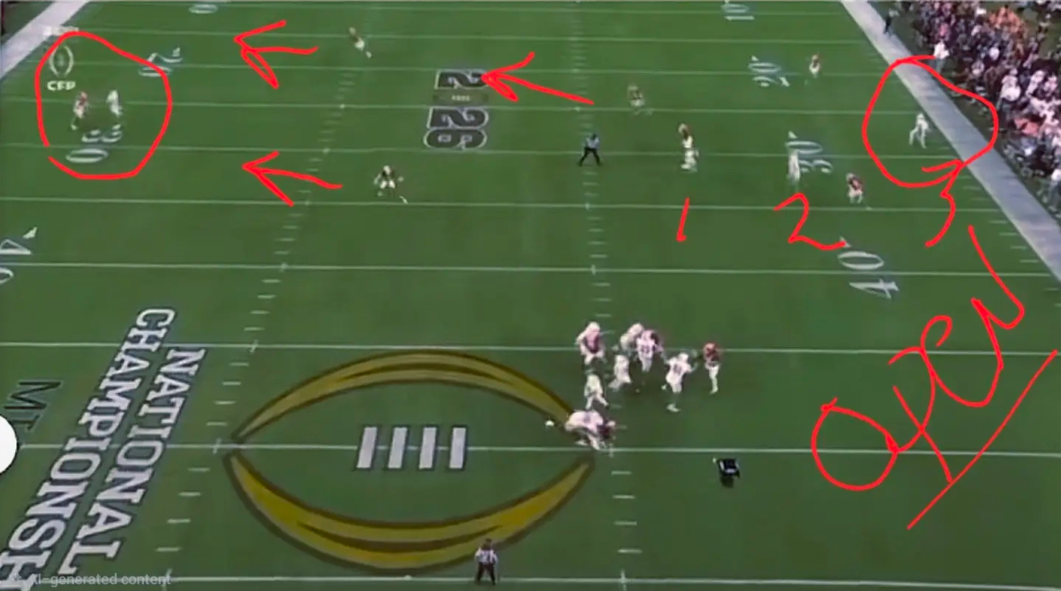 So I should listen to some guy on a message board bc he claims it was some complicated defensive scheme. Or I can listen and watch Carson Beck and others break down this play all over the internet. It’s actually quite simple to look up. But you just keep thinking you’re right, it can be your little secret. But since I’m a nice guy I’ll post a picture so maybe you can finally understand it wasn’t all that complicated.
