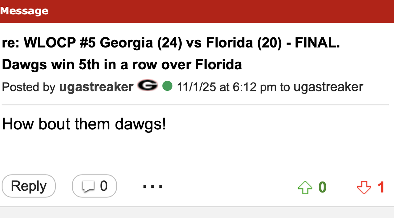re: WLOCP #5 Georgia (24) vs Florida (20) - FINAL. Dawgs win 5th in a row over Florida