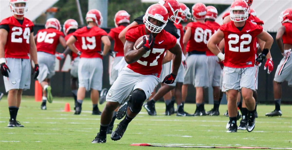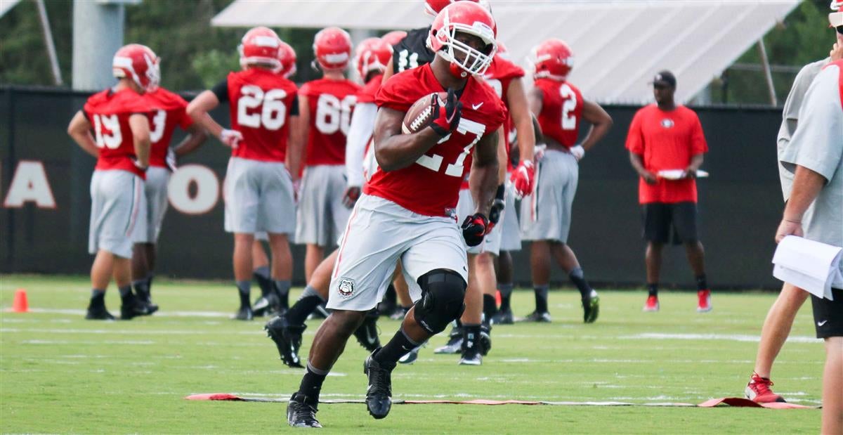 We’re going to start with the running backs here where Nick Chubb was practicing just as Kirby Smart said he would be -- without limitation. He was able to get a lot of work in this spring but today he looked a lot quicker and more explosive.