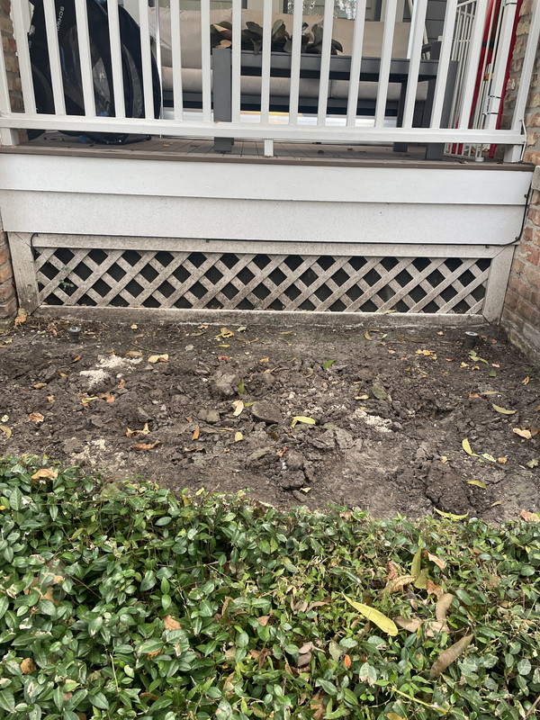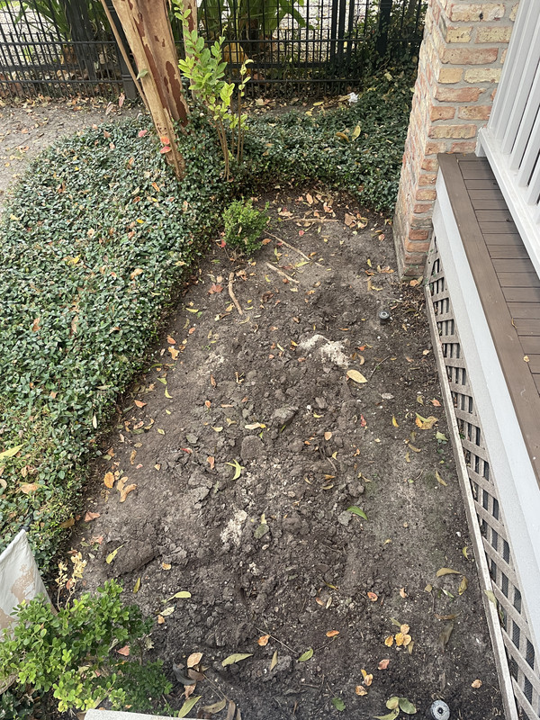 The boxwoods and gold splash windcreepers on the north side were already dead and pulled out. I've stirred up the dirt, there is clay about 4" below the soil. I was thinking putting some large rocks along the wall to protect the lattice then build up the beds 4-6" with compost?? The boxwoods on the south side survived and we will likely replant boxwoods in the same place on the north side. Any recommendation on what to plant behind the boxwoods? The gold splash windcreepers survived on the south side and I just dug them up, but we want to put something different in, maybe something perennial that flowers.
