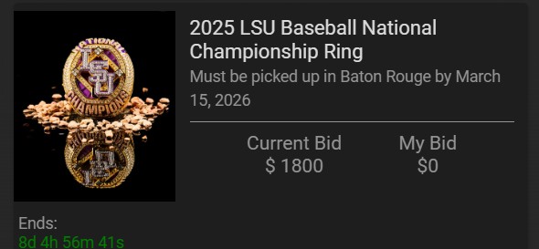 re: 2026 LSU Baseball First Pitch Banquet Auction