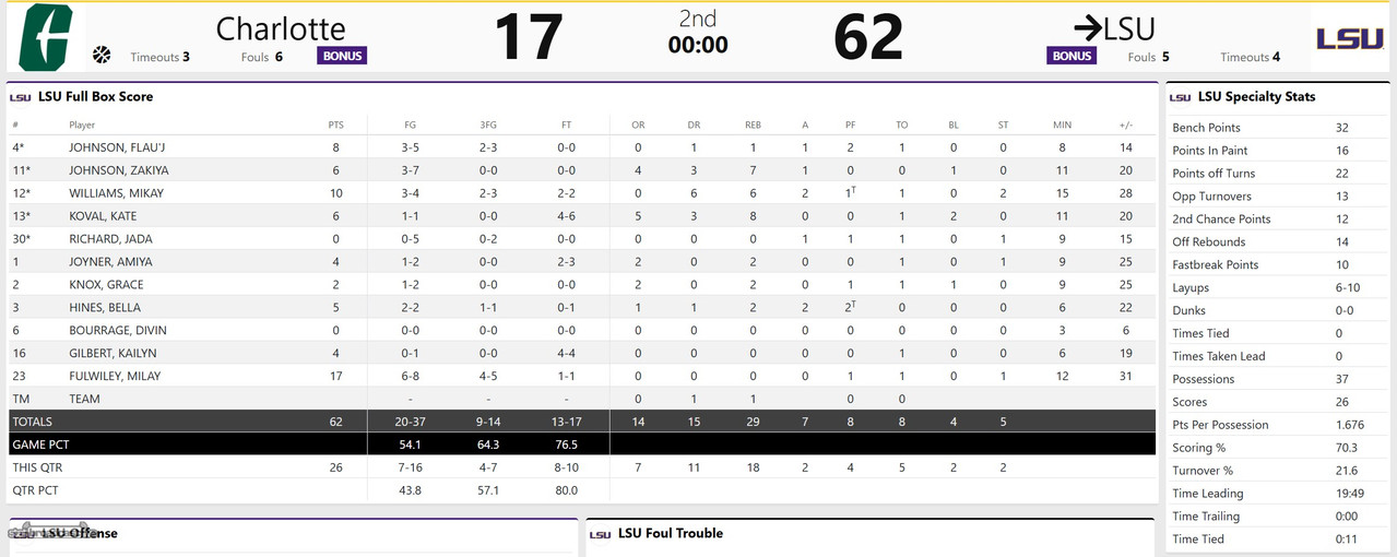 re: LSU women’s basketball up 118-70. Tigers Win!!