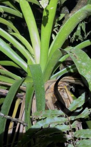 The bromeliads are the long leafed plants that grow on the trees - not a part of the tree but a separate plant that takes root on the tree. Those 2 shots show the golden eyelash viper and the Christmas phase eyelash viper as they were spotted.