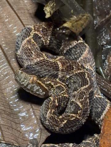Fer de lance, aka Terciopelo - got this one at midnight of our last night. Responsible for 90% of venomous bites and the majority of snakebite deaths in Costa Rica. A bite from an adult can kill you in 5-6 hours without antivenin.