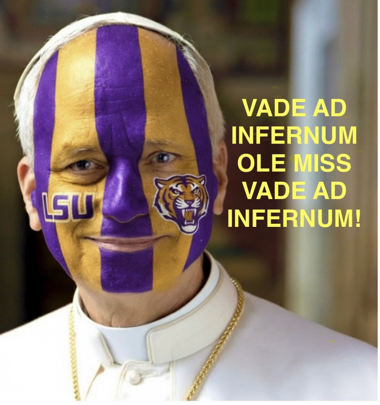 I need an update for my meme with the Pope wearing LSU face paint. All I have right now is Francis. Can someone post a new one with Leo, please?