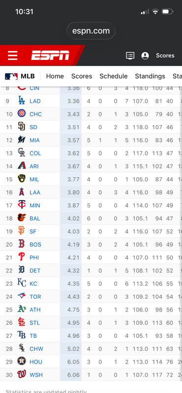 When was the last time our ERA ranking was this low?