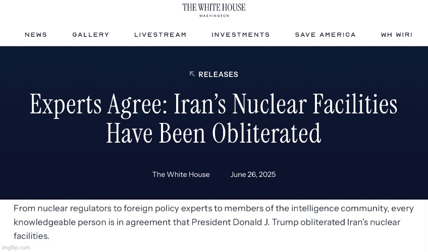 How am I wrong? Trump justified the attack on Tehran because he claimed Iran was weeks away from acquiring a nuclear weapon; Tulsi Gabbard’s sworn Senate testimony last month directly contradicted Trump’s claim.