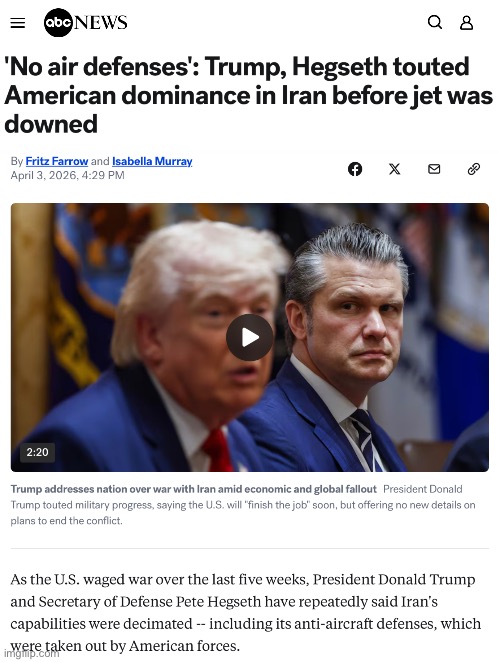 Imagine being so desperate for a win that you think Iran is winning the war because they managed to finally hit a plane after thousands of combat missions.