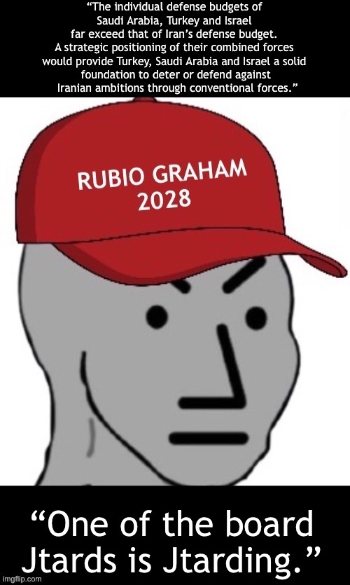 You hardly addressed my documented argument that Saudi Arabia, Turkey and Israel collectively have larger military budgets and combined militaries than Iran. This is the most substantive part of your reply: