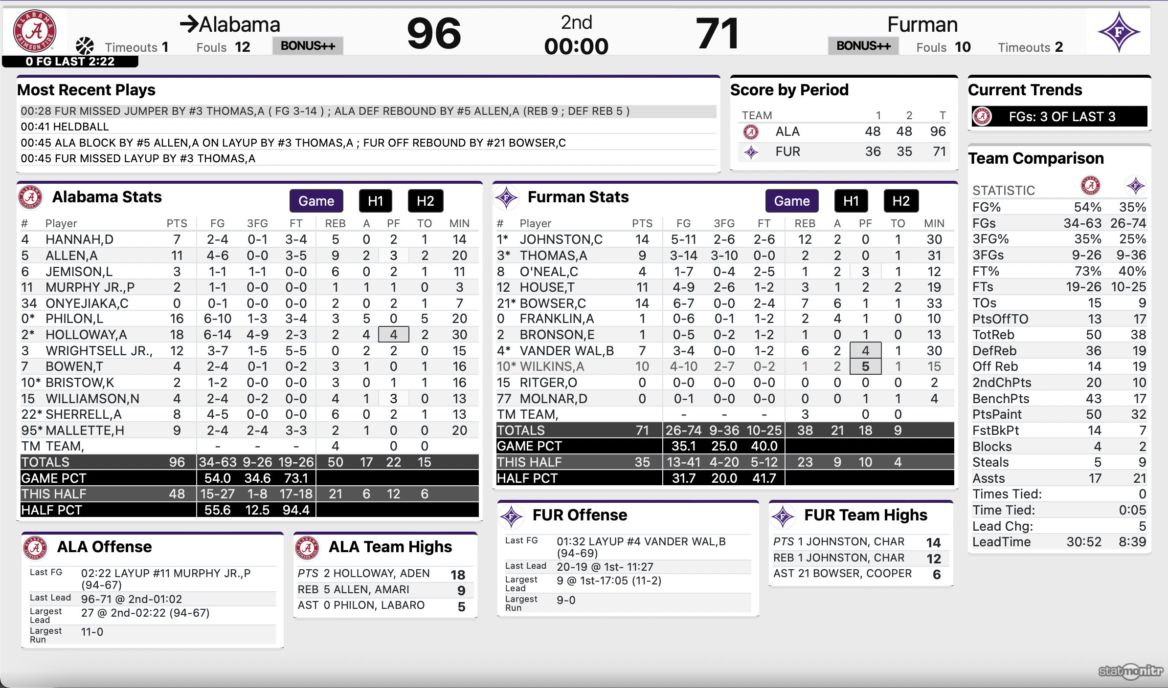 Random observation from tonight: While I’ve been sweating thinking about getting relegated to the rafters in a new area, Chris Stewart and Bryan Passink got relegated to the rafters tonight in Coleman. Had normees sitting at the broadcast table on each side of the TV crew and Bama radio was up by the TV cameras on the north side of Coleman.