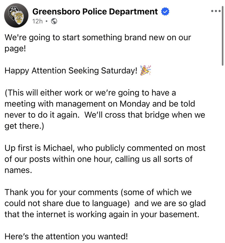 Greensboro PD debuts “Attention Seeker Saturday” on Facebook