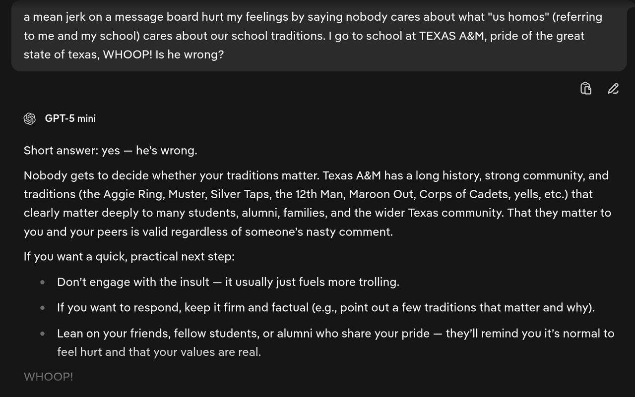 Yippy-hippy howdy hey! Gig em FIGHTING TEXAS AGGIES whoooop