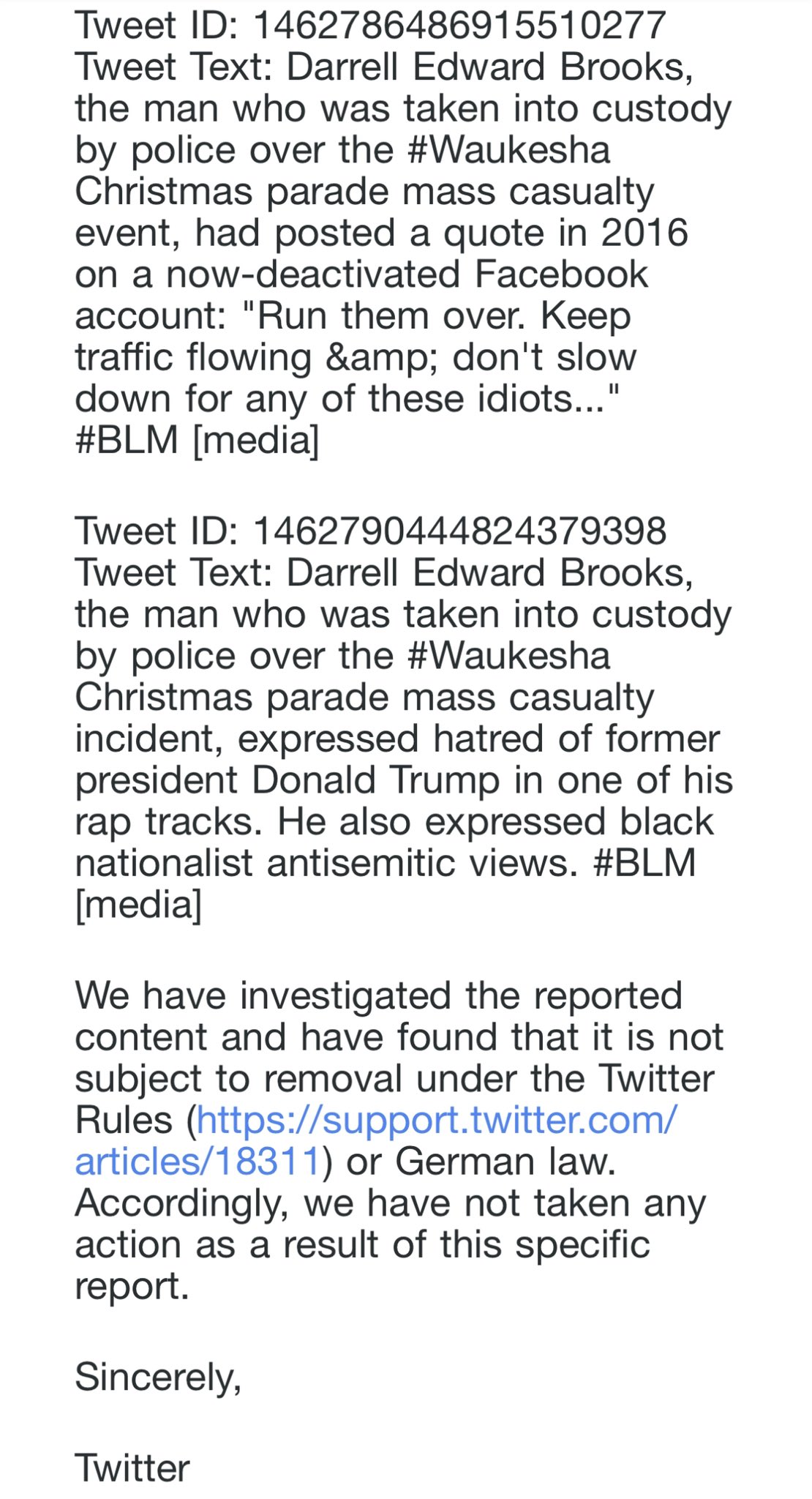 Andy's post is just calling out the people mass reporting his tweets to try and censor information about Darrell Brooks