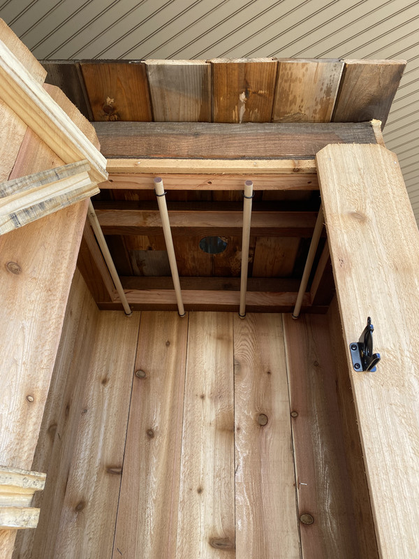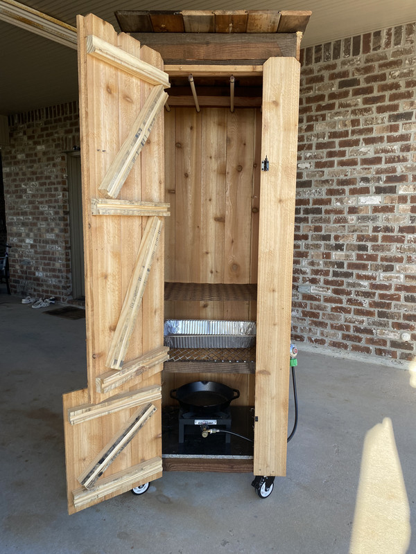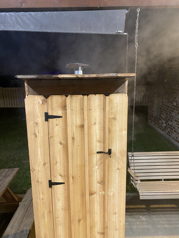 Still have some finishing touches but this is what I have so far. I had a piece of granite laying around from our outdoor kitchen so I used it as my floor to be a heat barrier and catch any pieces of burning wood that may fall. I still have to finish the roof and find some grating to make a rack and some rods to hang sausage. I ripped some fence boards to put strips over the cracks between the boards too. Will post a pic when it’s 100% complete.